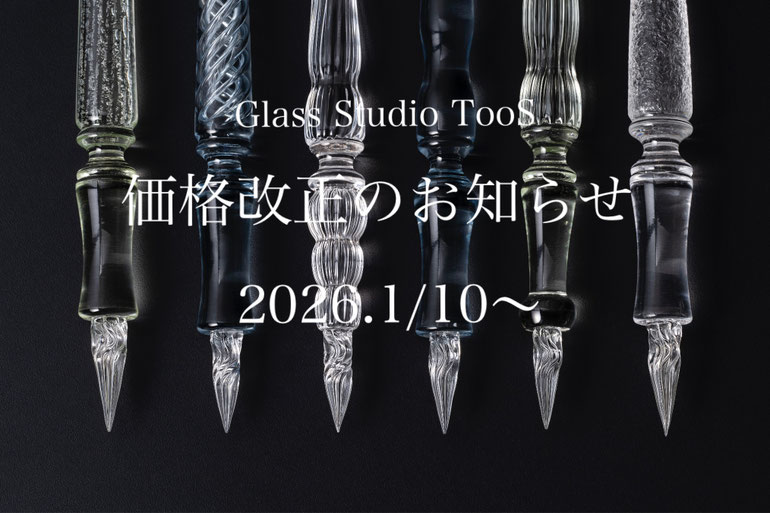 Glass Studio TooS の一部商品の価格変更 について、誠に勝手ながら2022年9月11日よりガラスペンページ にありますPDFカタログ のように変更させていただきたくお願い申し上げます。